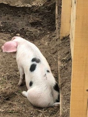 PINK piggie last spring at Strubridge Village, Massachusetts