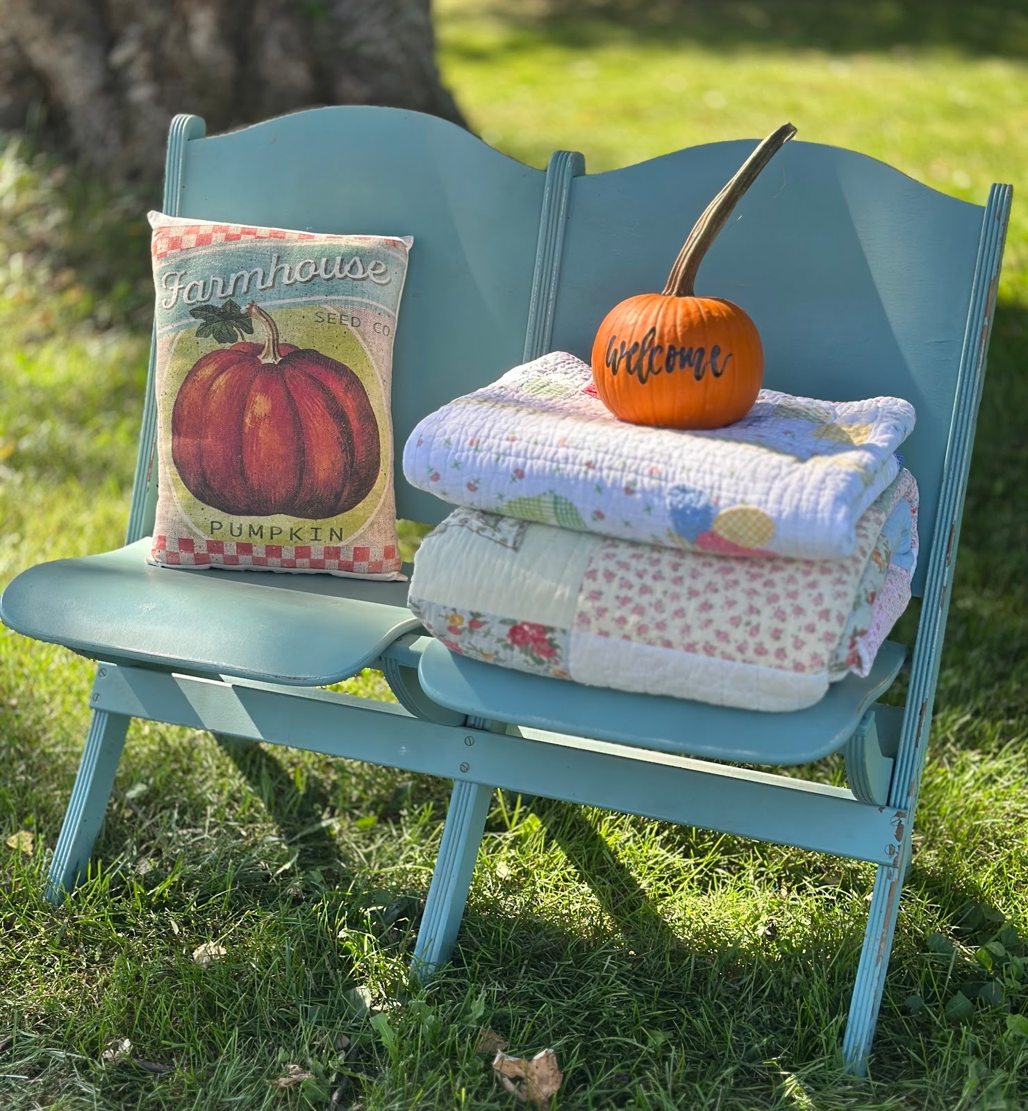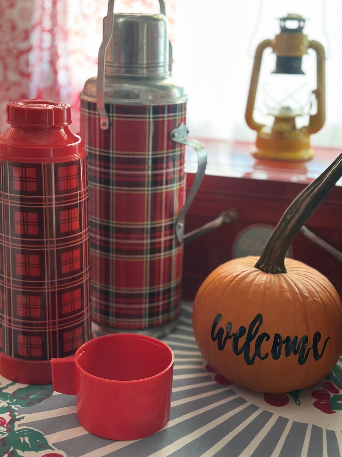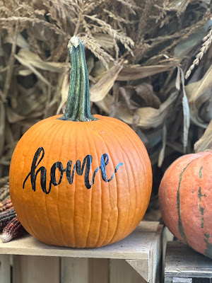 We’ll keep our favorite soups warm in vintage thermoses and slice a loaf of homemade bread – it’ll be a no-fuss meal. And even though Maizy won’t leave the backyard, I know she’ll be the ideal spot for catching up – no restaurant could be any better. If you want to make the sweet little pumpkin, it’s a snap – a black permanent marker is all it takes. Free-hand the lettering or use a stencil; it’ll look terrific!
