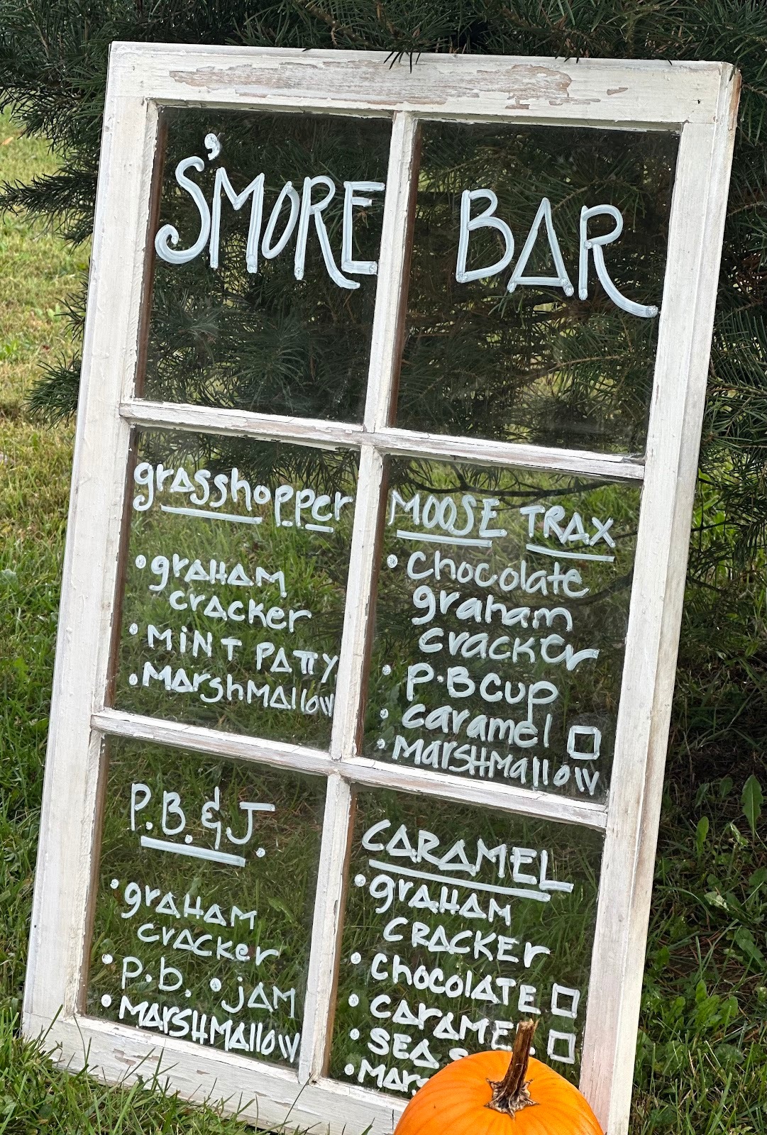 Maybe it’s only me, but I can’t have a bonfire without s’mores. I’d seen this creative idea before, so I decided to give it a try: an old window and a window marker were all that I needed. The hardest part was deciding which four “recipes” to choose! There are so many clever combinations, you really can’t go wrong. What are some of your favorite ways to make s’mores?