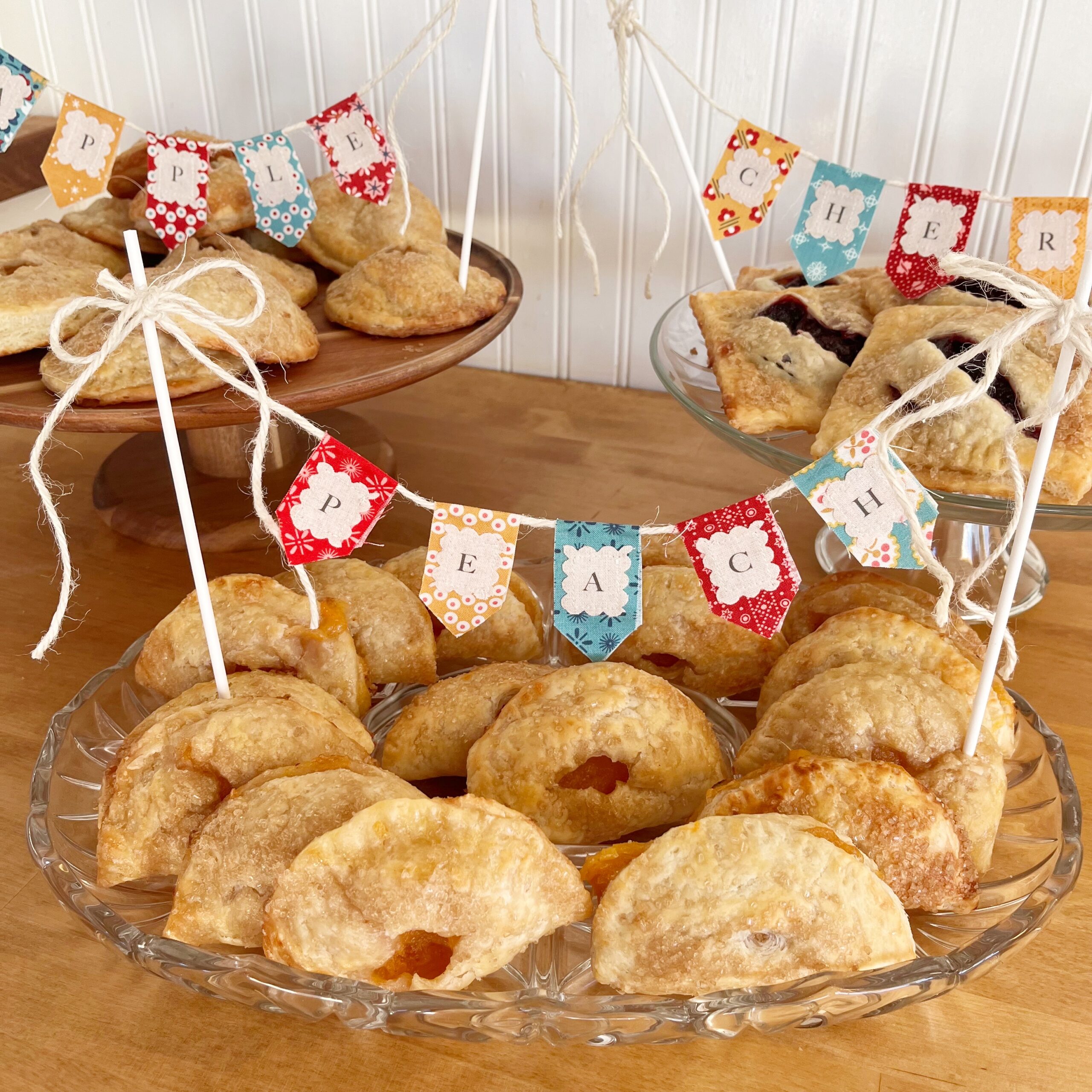 Somehow I managed to make hand pies AND cute little buntings for a surprise birthday party of a friend that loves pie! (Tip: hand pies are pretty labor intensive on one leg… I made the pie dough and fruit filling one day, and assembled and baked them the next day and YAY, total success!)