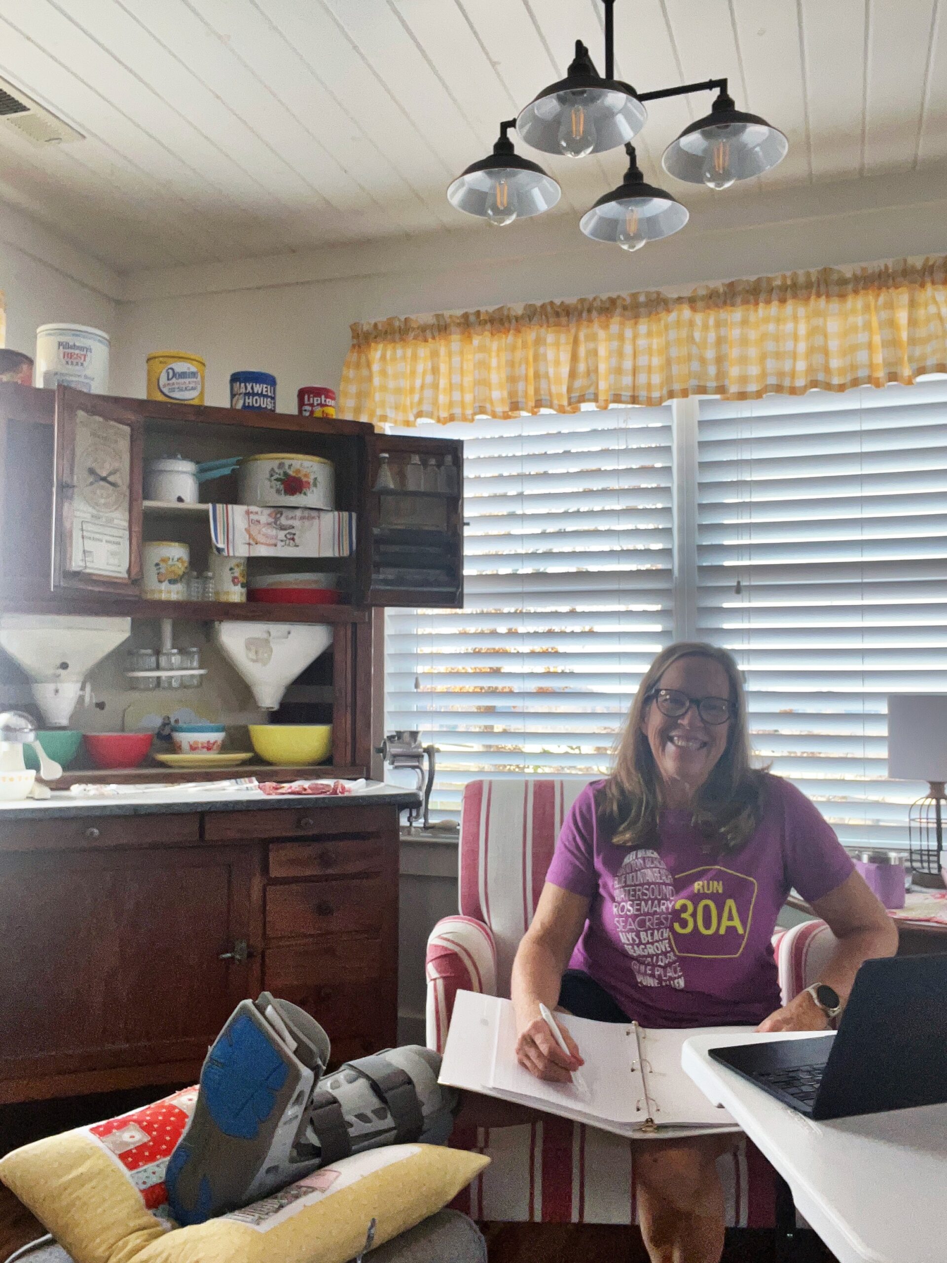 Hello my Farmgirl friends!!! A month ago today I had some corrective surgery on my big toe. And not only am I in this horribly heavy boot, I’ve not been able to put any weight on it at all. So I’m here to share all the things I’ve been up to in this season of life! As this picture above shows… I’ve been moving to all my favorite spots around my house where I drink my coffee and read! ALWAYS coffee in hand!