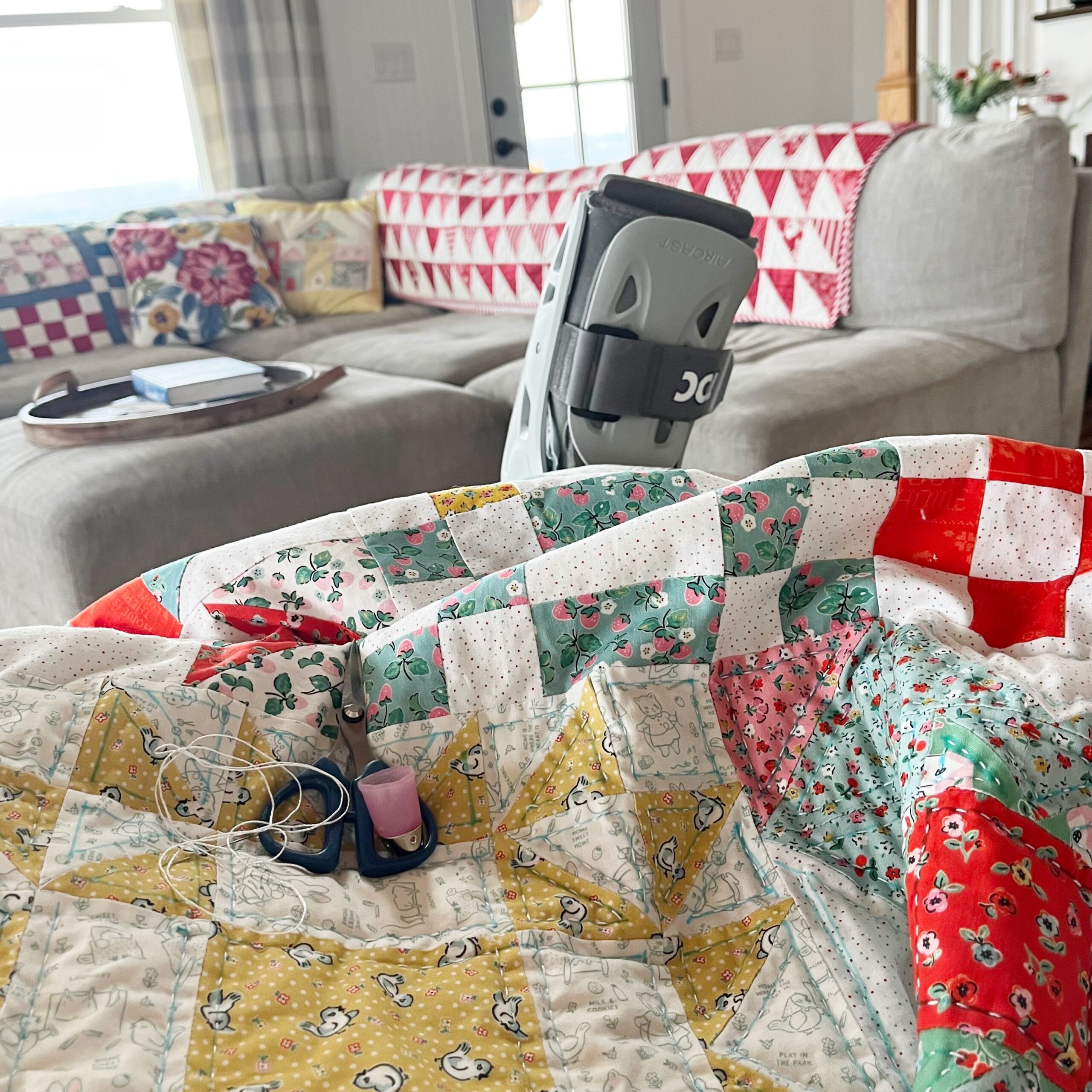 I’ve been dealing with some bone loss issues and pain in my big toe for quite some time but it never seemed like the right time to have the surgery… but finally back in the spring I decided October was the right season… our cut flower business would be over for the year, and I had a few months to clear my calendar for my small business of sewing and blogging. Also… the thought of laying on my porch bed curled up in a blanket and watching the leaves change seemed like the most soothing thing at the time!