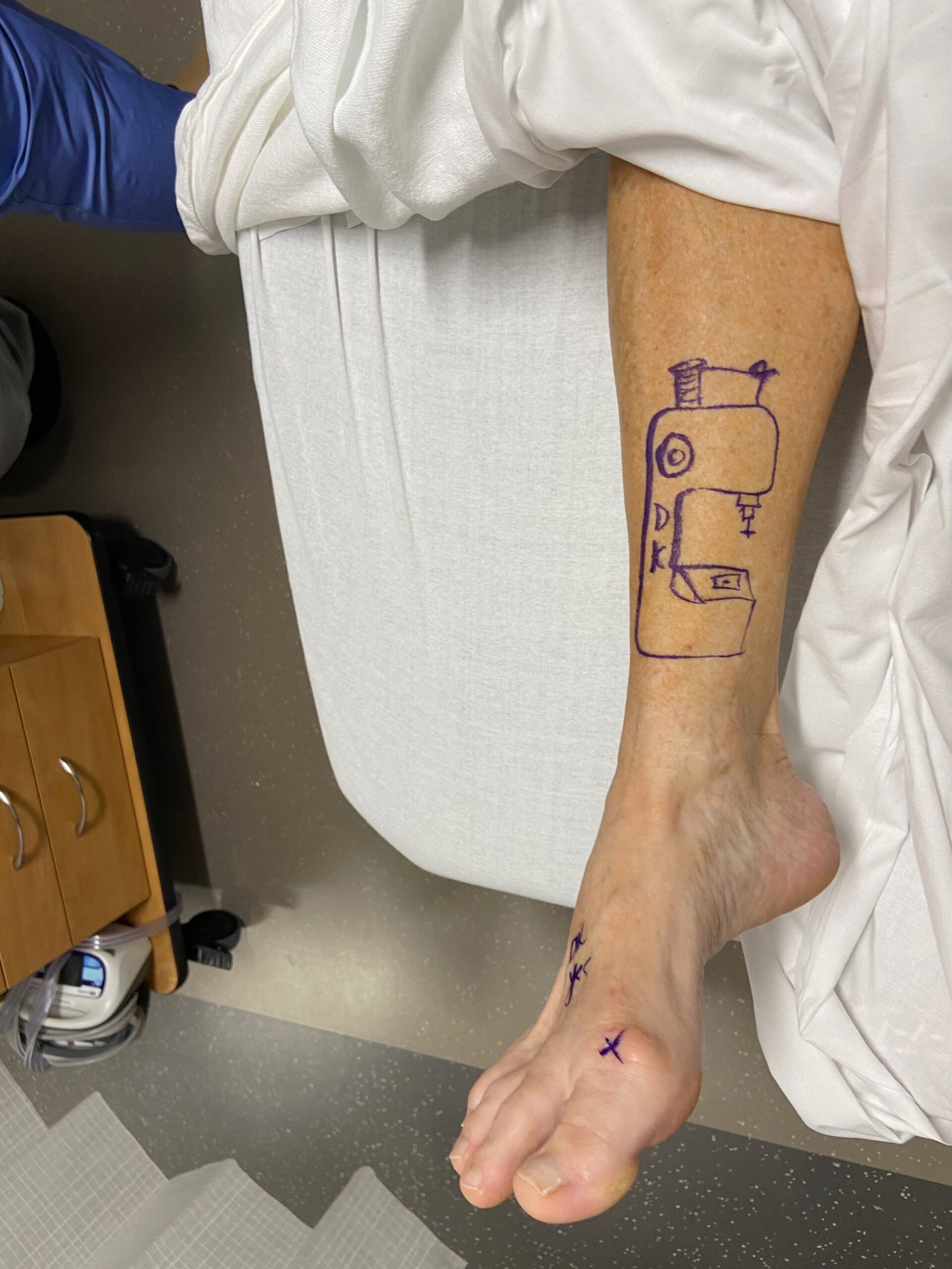 I even moved the most important sewing supplies from my upstairs sewing studio to my sunny dining room downstairs where I set up a great little sewing space. I even practiced running my sewing machine pedal with my left foot! I had left no stone unturned in my preparation for this surgery.