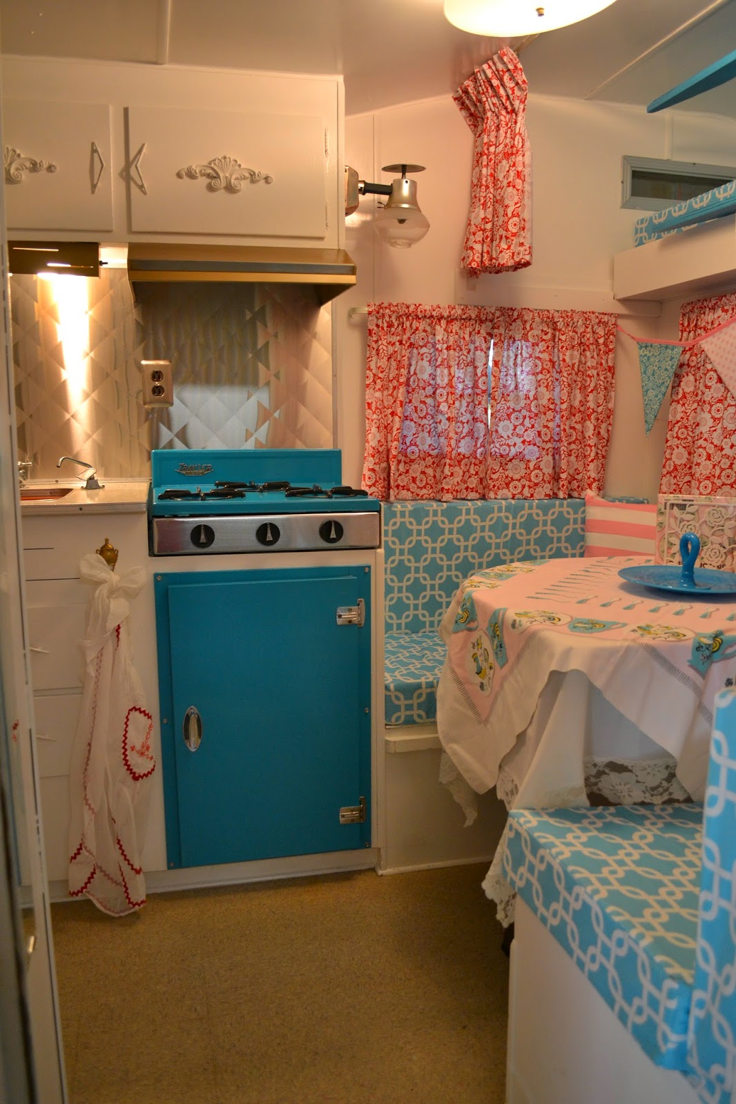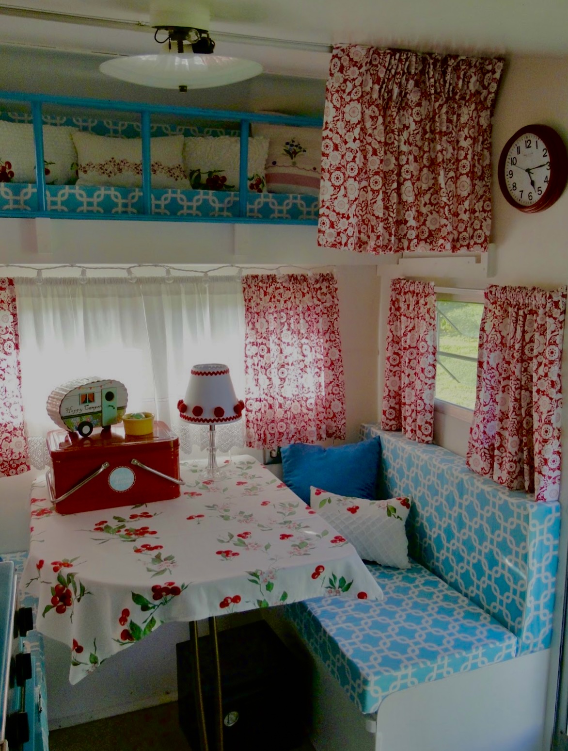 Maybe as a sign the tide was about to turn, I found this birdhouse for sale at a little corner store…about the cutest thing I’d ever seen. Soon it was welcoming birds to our backyard. A couple of weeks later, I sat down to catch up on a friend’s blog…I’d followed the progress on her 1963 Yellowstone camper for about 5 years. Freshly painted, with cheery red fabric stitched into curtains, comfy seating, and lots of playful touches, it was amazing to look at the before and after snapshots. She and her husband had worked hard to spruce up their camper and soon it was out on the road for adventures.