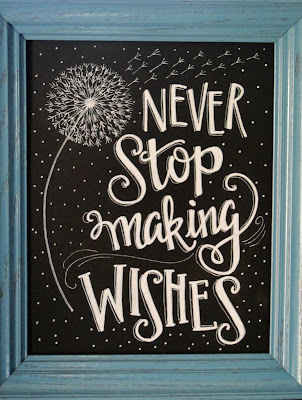 Something about it caught my eye…the lovely shade of turquoise-blue, the talent behind the lettering, the message. Yes…so true, NEVER stop making wishes.